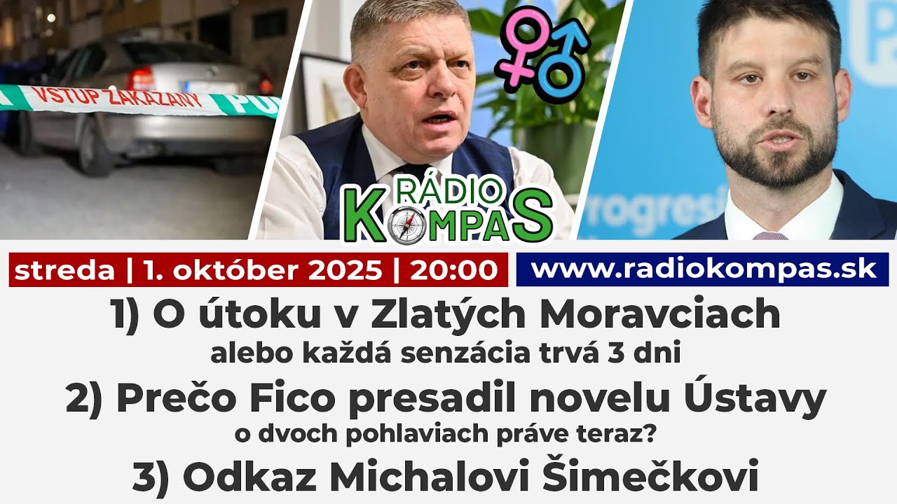 Útok v Zlatých Moravciach; Ficova novela Ústavy; Odkaz Šimečkovi (Rádio Kompas – 1.10.2025)